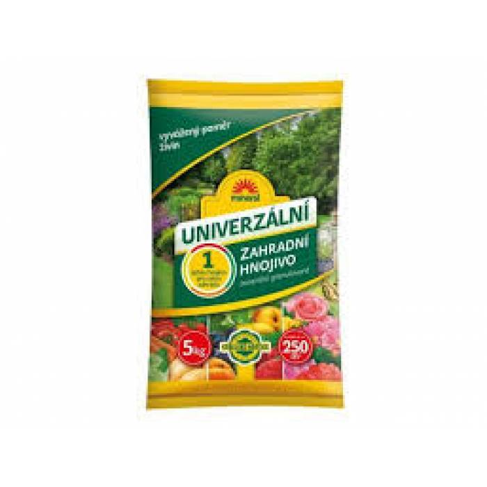 Univerzální zahradní hnojivo je granulované hnojivo s optimálním poměrem živin. Hnojivo je vhodné k výživě např. jahod, růží, jehličnanů, ovocných stromů, brambor, rostlin okrasných květem, drobného ovoce, trávníku a mnoha dalších.